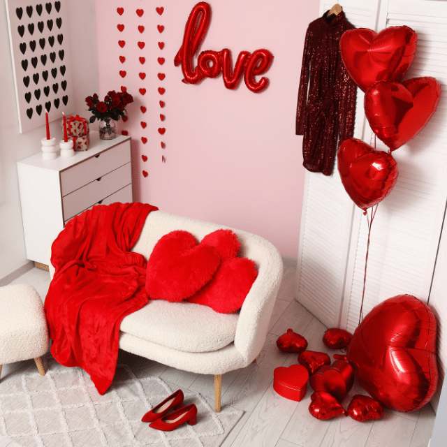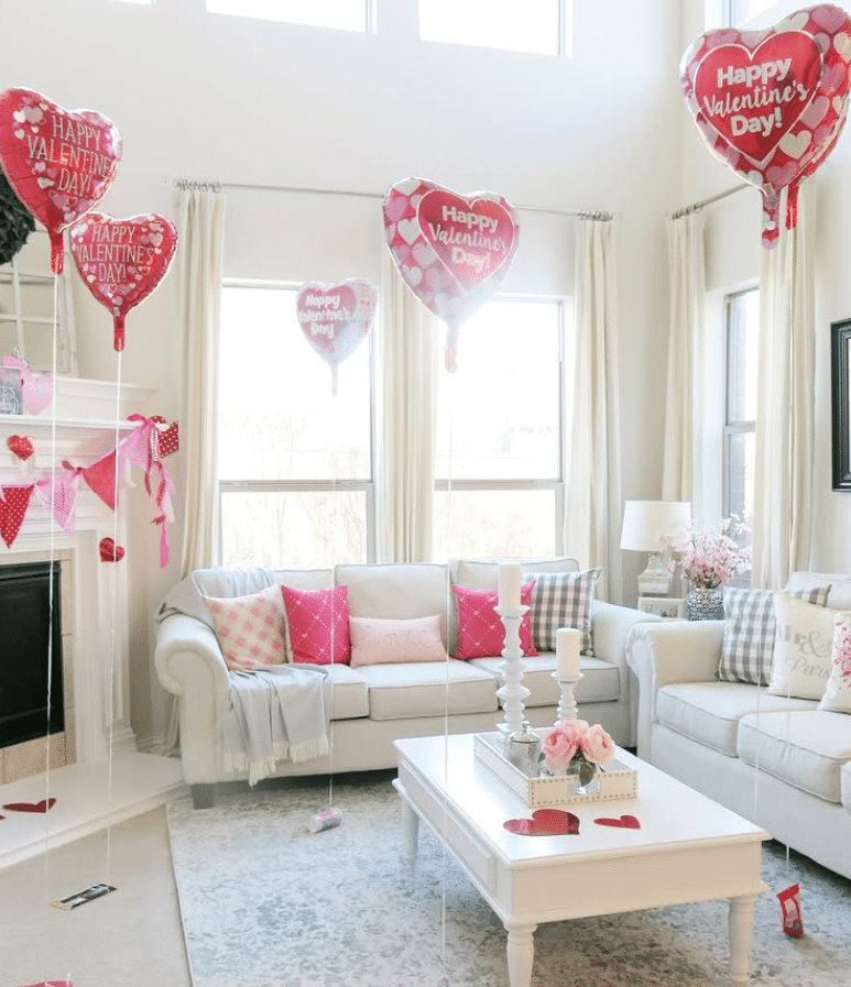 5. Bright balloon filled Valentines living room